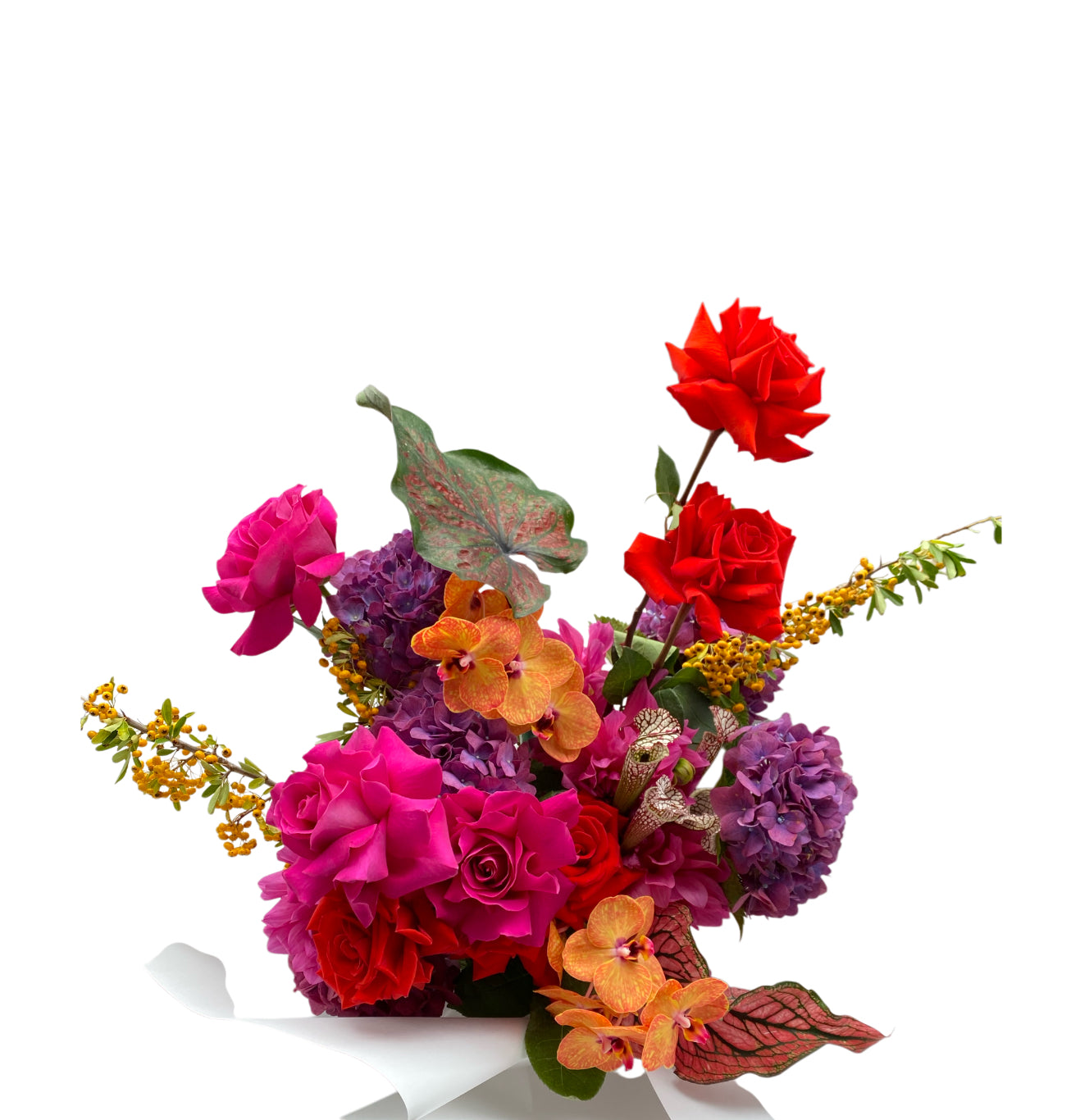 隆重推出我们雕塑般的热带花卉杰作,现代花卉与繁茂的绿植优雅融合,并以标志性的蝴蝶兰点缀其间。这件作品是对热带风情、质感与永恒的致敬。请相信我们为您量身定制的设计,并精心挑选最优质的当季花卉。用这件花卉雕塑提升您的空间,真正展现艺术性、奢华感和自然之美。